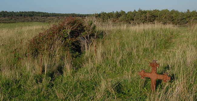 Fra kirkegården er der en formidabel udsigt til vandreklitterne ved Rubjerg Knude. Her kan du også høre en historie ved at ringe til nummeret på audiopælen lige inden for hovedlågen.